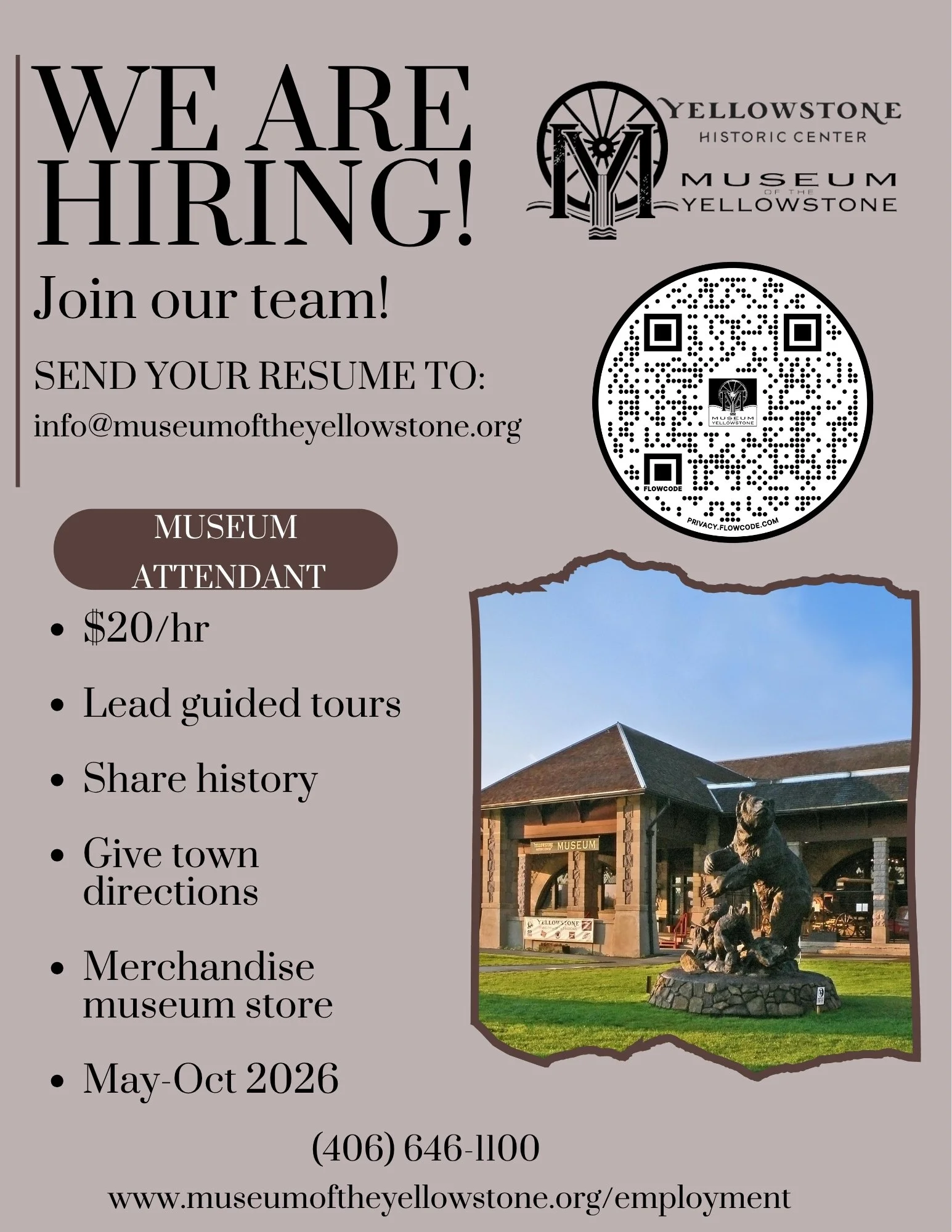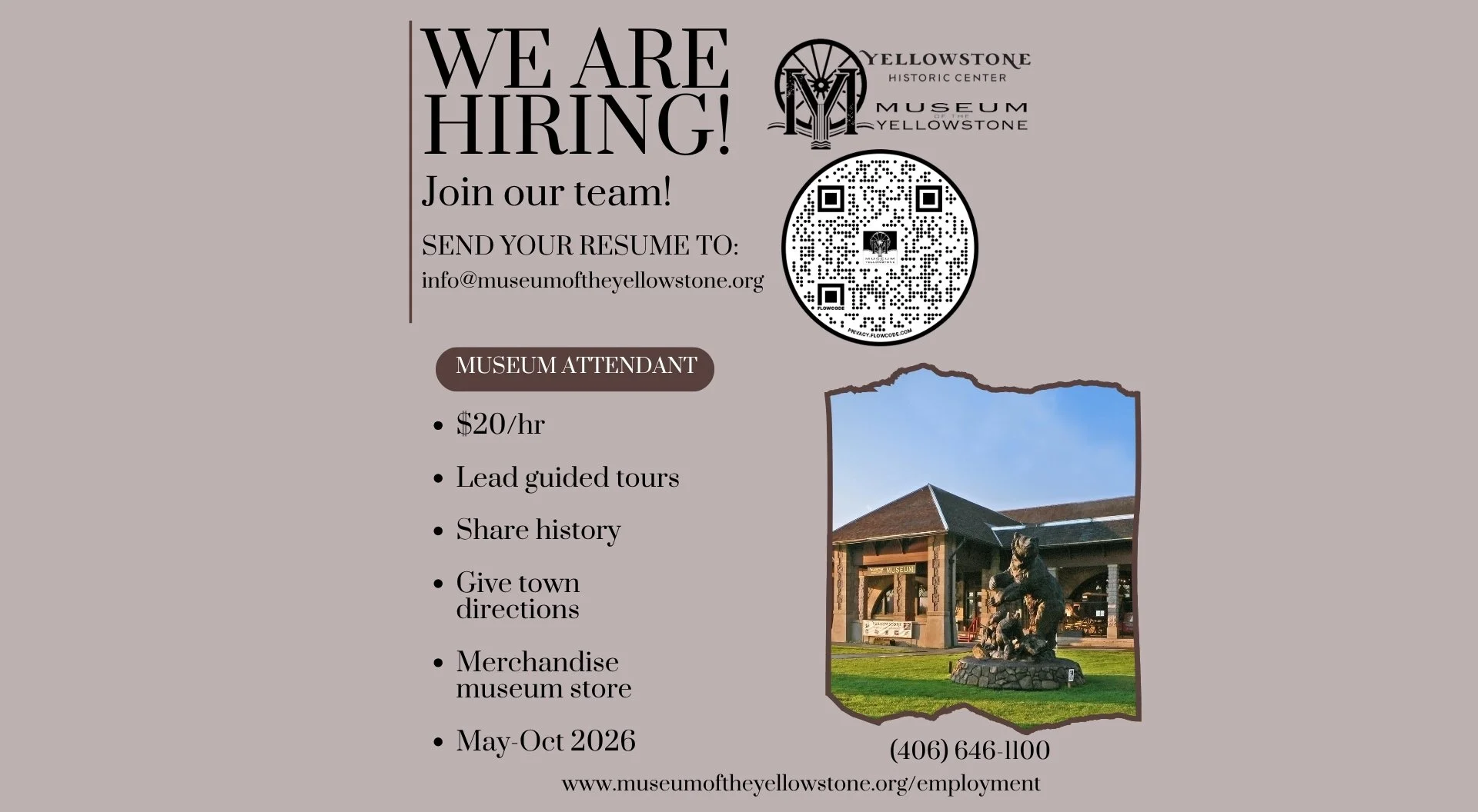 The Yellowstone Historic Center is an equal opportunity employer and is committed to fostering a diverse, inclusive, and welcoming environment for all staff, volunteers, and partners. We do not discriminate on the basis of race, color, religion, gender, gender expression, age, national origin, disability, marital status, sexual orientation, or military status in any of our activities or operations. We celebrate different perspectives and are committed to building a team that represents a variety of backgrounds, perspectives, and skills, which is essential for preserving and sharing history.
